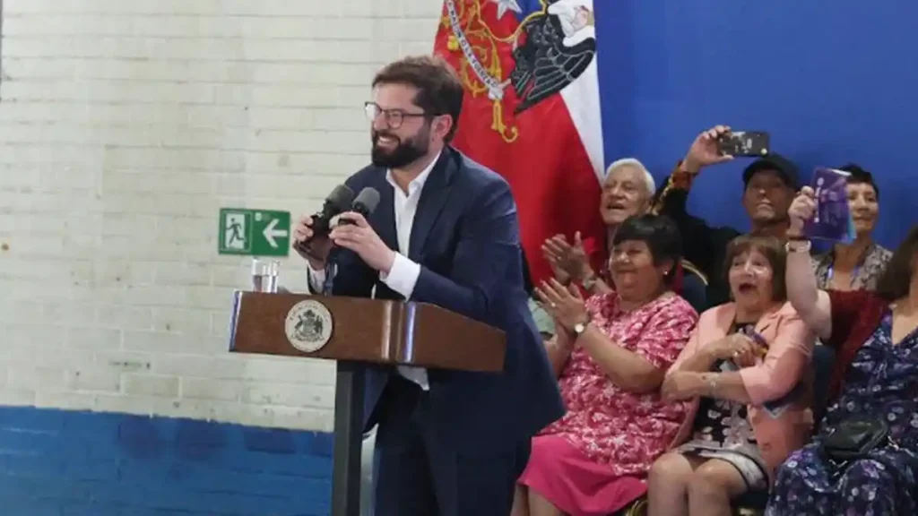 Este lunes el presidente de la República, Gabriel Boric, visitó la comuna de Maipú, donde junto a la ministra del Trabajo y Previsión Social, Jeannette Jara; la ministra del Interior y Seguridad Pública, Carolina Tohá; la ministra de Desarrollo Social y Familia, Javiera Toro; la expresidenta de la República, Michelle Bachelet; y el alcalde de Maipú, Tomás Vodanovic, encabezó la actividad “Chile merece mejores pensiones”, que se desarrolló en el Gimnasio Municipal Santiago Bueras de la comuna histórica.